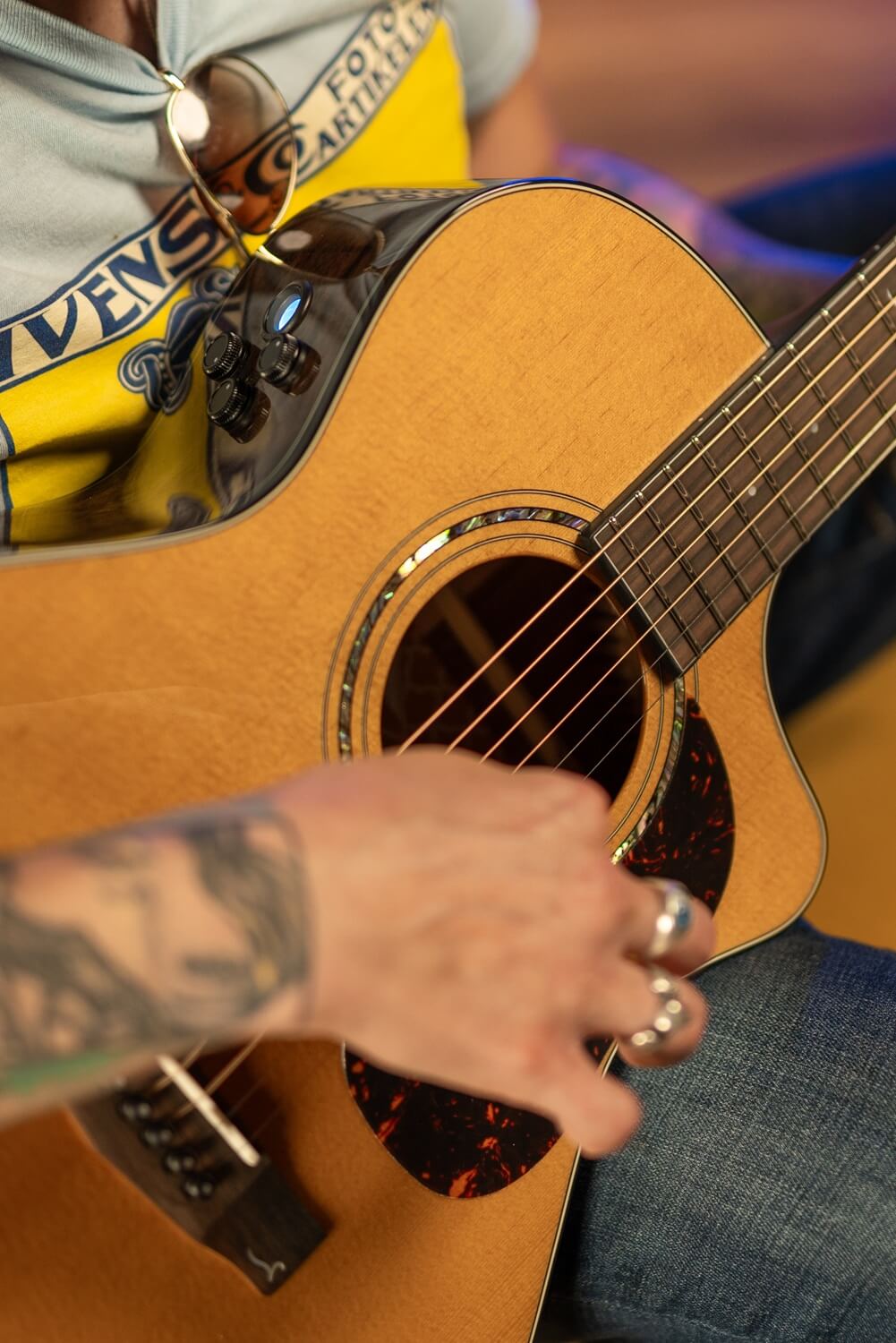 For amplified performance, the Core-MC Ovangkol is equipped with a Fishman® Presys VT preamp system with discreet side-mounted controls. The system provides onboard volume and tone controls for straightforward sound shaping, offering a clean acoustic tone suitable for live and studio applications.