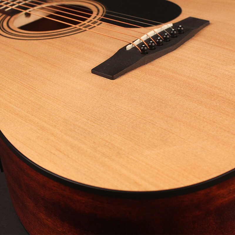 Clair tout en restant naturel, avec des médiums puissants et chaleureux, l’acajou est un bois prisé depuis des décennies et est une référence pour le dos et les éclisses des guitares acoustiques haut de gamme.