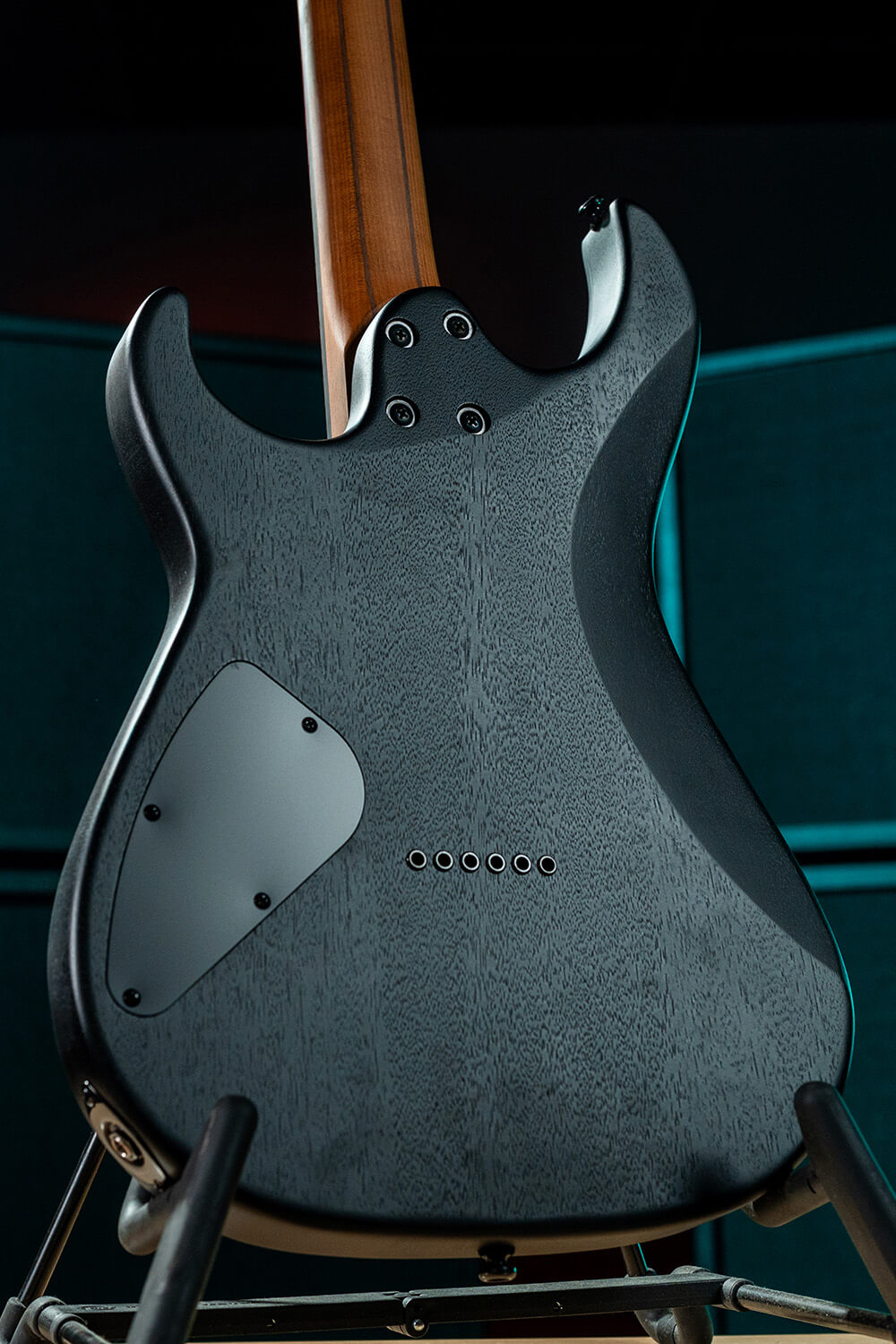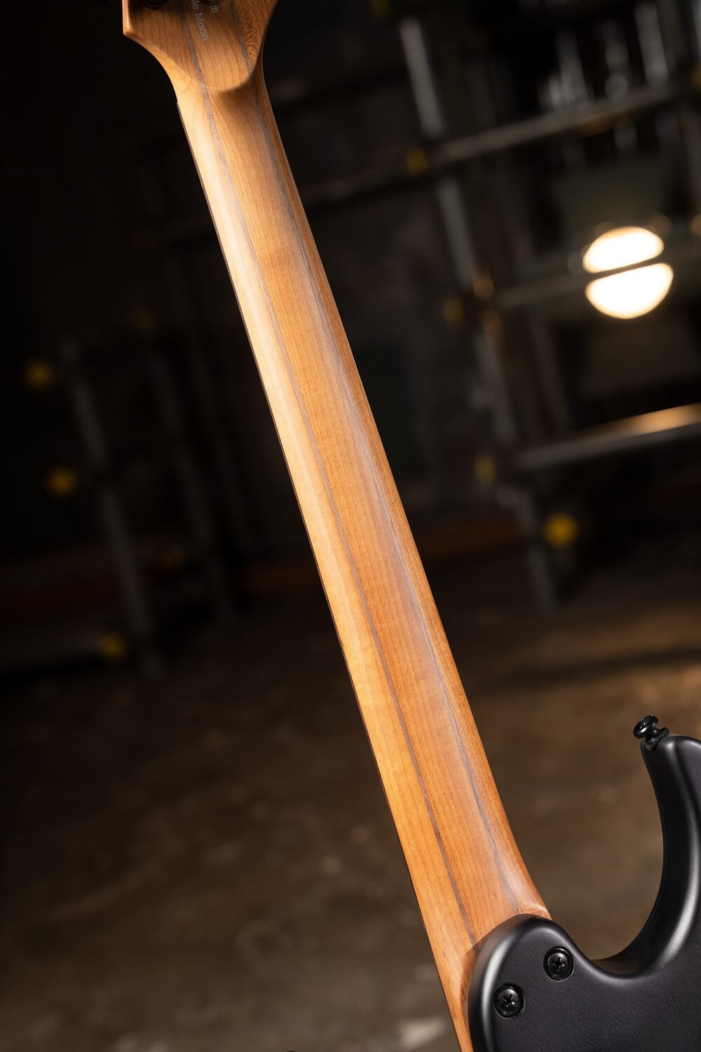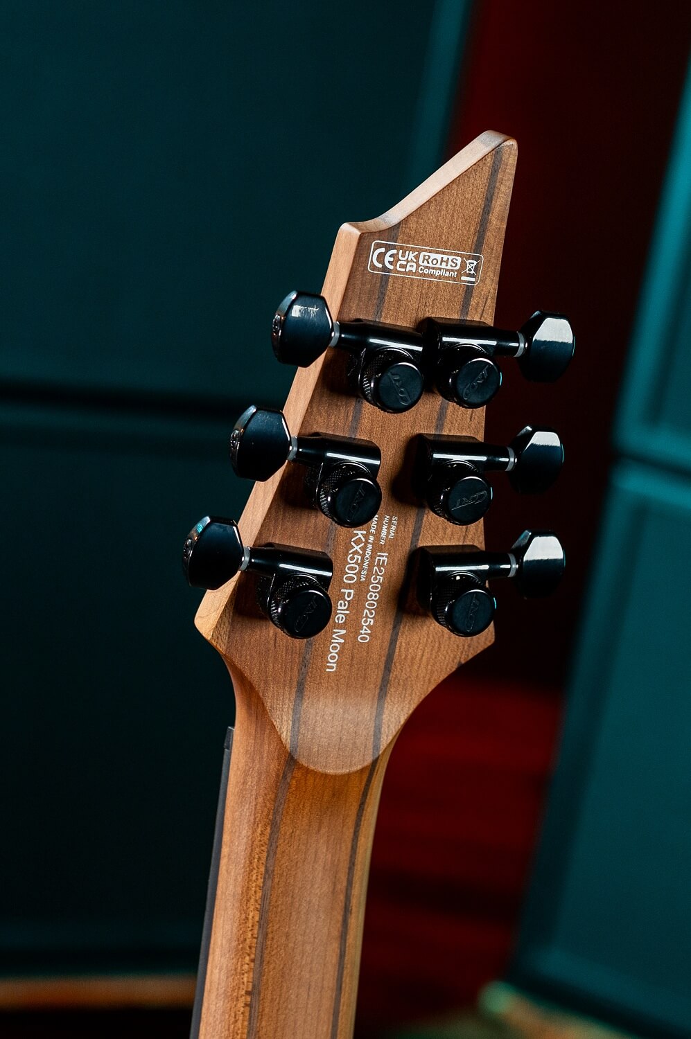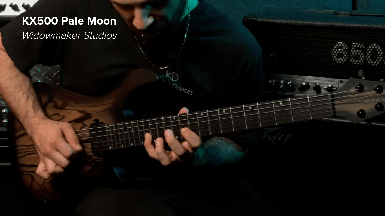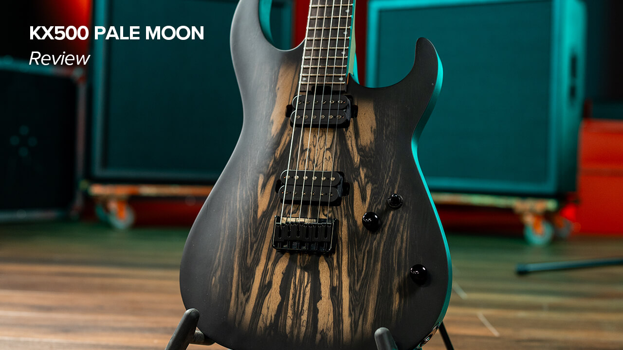 KX500 Pale Moon은 마호가니 바디를 통해 따뜻하고 풍부한 톤을 구현하며, 강력한 미드레인지와 탄탄한 저음을 제공합니다. 여기에 페일 문 에보니 비니어 탑이 독창적인 미감을 더하고, 매트 오픈 포어 마감으로 목재 본연의 아름다움을 강조합니다. 볼트온 방식의 5피스 로스티드 메이플·월넛 넥은 울림과 내구성을 높이며, 1프렛 19.5mm, 12프렛 21.5mm의 편안한 D형 프로파일을 갖추고 있습니다. 628mm 스케일 길이의 넥에는 마카사르 에보니 프렛보드와 24개의 점보 스테인리스 프렛, 15.75인치 지판 곡률, 야광 사이드 도트, 티어드롭 인레이가 적용되었습니다.