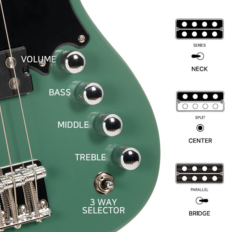 1-Volume, 3-Band EQ, 3-Way Pickup Function Selector |