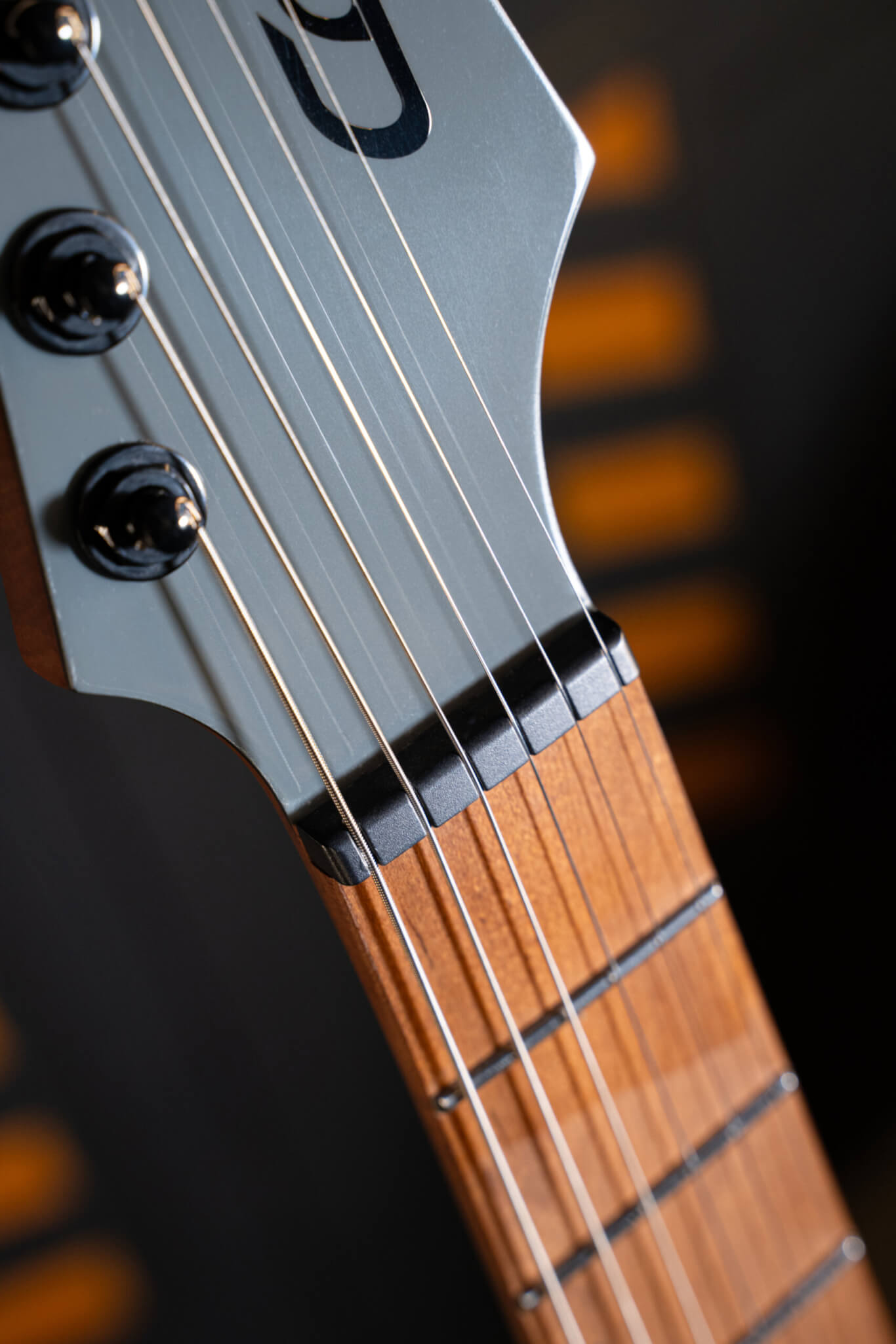 400mm(15.75인치)의 로스티드 메이플 프렛보드와 24개의 스테인리스 프렛, 43mm(1 11/16인치) 폭의 Graph Tech® Black TUSQ 너트로 편안하고 안정적인 연주감을 제공하며, 프렛보드 측면의 야광 사이드 도트는 어두운 환경에서도 프렛 포지션을 잘 찾을 수 있게 합니다. 그리고 6개의 인라인 헤드머신과 틸트-백 헤드스톡 구조가 서스테인을 향상시킵니다.